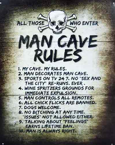 Tin Sign: Man, Cave Rules sign CG761