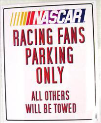 TG-495 Nascar Pans Parking Only tin sign. Collector metal signs. A collection of yesterday's signs. Great for decorating homes, offices, restaurants, etc. Lithographed steel metal. TG495 Mounted on a black 20" x 16" card.