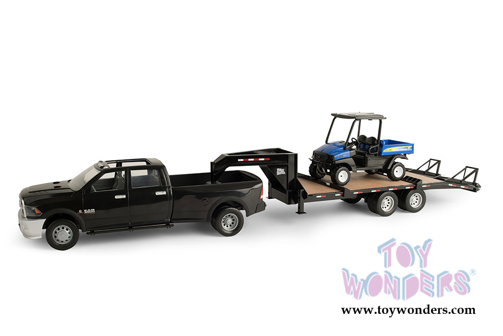 Tomy ERTL Big Farm - New Holland Ram 3500 Pickup Truck with Gooseneck Trailer and Rustler 125 UTV (1/16 scale sturdy plastic model car, Black and Blue) 46457