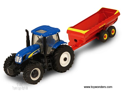 Tomy ERTL New Holland Agriculture - T7070 w/ V-Tank Spreader Farm Tractor (1/64 scale diecast model car, Blue) 13825