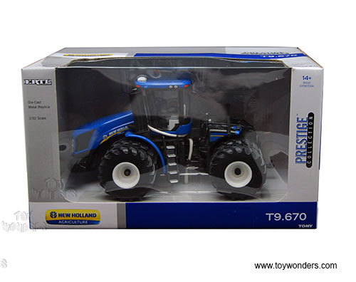 13819 Tomy ERTL Prestige New Holland Agriculture - T9.670 Farm Tractor. 1:32 scale diecast collectible model. This T9.670 farm tractor is a 9"L x 6"W x 5"H diecast model. Individually packed in a window box. Box size: 11.75"L x 7.5"W x 6.75"H. This T9.670 farm tractor is manufactured by Tomy. Item 13819 is in BLUE color.