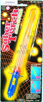 11"L battery operated light-up sword. Requires one "AA" battery.