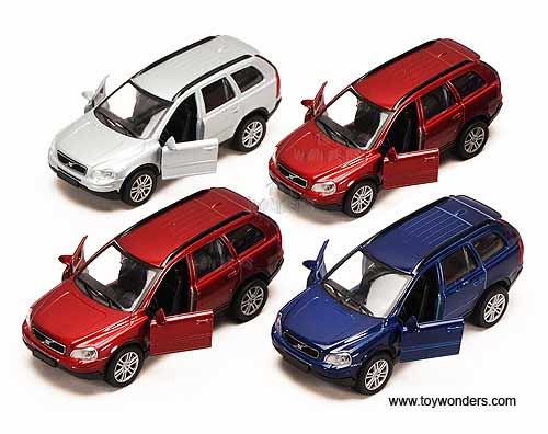 1079D Volvo XC90 SUV. 1:34 scale diecast collectible model car. This Volvo XC-90 sports utility vehicle is a 5.5"L x 2.25"W x 2"H die-cast metal car with openable doors and pullback action. 12 pcs per display box and in assorted colors. 24 pcs/inner. Z8.