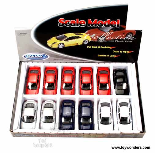 A49720D Welly - Audi Series. 1:34 - 1:39 scale diecast collectible model cars. Assortment includes Audi A4 & Audi TT. Those Audi cars are 4.5"Lx 1.75"Wx 1.5"H diecast collectible model car with openable doors. Pull back action. Manufactured by Welly. 12 pcs per display box in assorted colors and styles. 72 pcs per inner box.