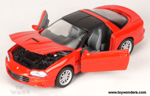 2424/4D WELLY - 2002 Chevrolet Camaro Scale: 1:24 Dimensions: 7.75"L x 3"W x 2"H Chevy Camaro die cast metal car with opening doors & hood. GM is a trademark of the General Motors Corporation Manufactured by Welly 4 pcs per display box in assorted colors 24 pcs per inner box