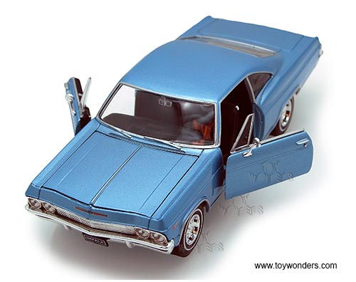 22417/4D/32 Welly - 1965 Chevy Impala SS396 Hard Top. 1:24 scale diecast collectible model. This Chevrolet Impala SS-396 is an 8"L x 3"W x 2"H die cast with openable doors & hood. This 65 Chevy Impala SS 396 is manufactured by WELLY. 4 pcs per display box and in Assorted colors. 16 pcs per inner box. GM is a trademark of the General Motors Corporation.