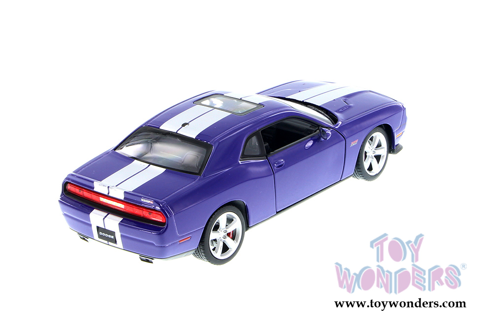 24049WPR Welly - 2013 Dodge Challenger SRT Hard Top. 1:24 scale diecast collectible model car. This Dodge Challenger is a 7.5"L x 3"W x 2.25"H diecast metal car with freewheeling, openable doors, and hood. Individually packed in a window box WB. Box measures 9"L x 4.25"W x 4"H. This 2013 Dodge Challenger is manufactured by Welly. Item 24049WPR is in PURPLE color. 6 pcs per inner.