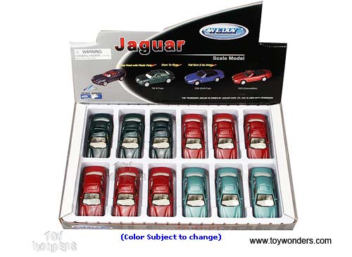 49738D Welly - Jaguar S-Type Hard Top. 1:34 - 1:39 scale diecast collectible model car. This Jaguar S Type is a 4"Lx 1.75"Wx 1.5"H die cast metal car with openable doors, and pull back motor action. This Jaguar S-Type is manufactured by Welly. 12 pcs per display box and in assorted colors. 72 pcs per inner box.