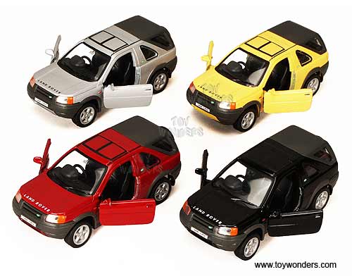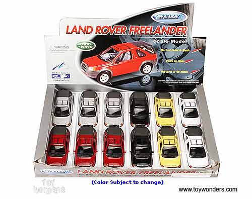 49761D Welly - Land Rover Freelander. 1:39 scale diecast collectible model car. This Land Rover Freelander is a 4.75" long diecast SUV with pullback motor action and openable doors. 12 pcs per display box and in assorted colors. 72 pcs per inner box. This Land Rover sports utility vehicle is manufactured by Welly.