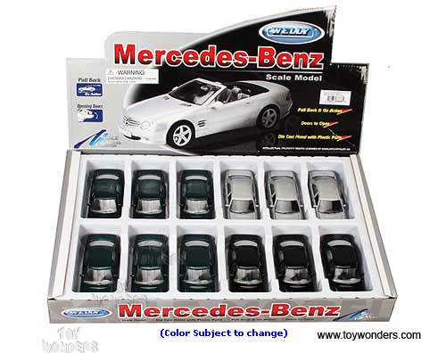 49723D Welly - Mercedes-Benz E-320 Hard Top. 1:34 - 1:39 scale diecast collectible model car. This Mercedes Benz is a 4.5"Lx 1.75"Wx 1.5"H die cast metal car with openable doors and pull back action. This Mercedes-Benz E320 is manufactured by Welly. 12 pcs per display box in assorted colors. 72 pcs per inner box.