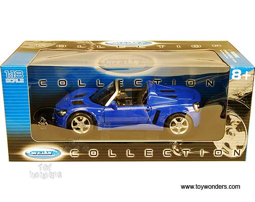 12511BU Welly - 2001 Opel Speedster Convertible. 1:18 scale diecast collectible model car. This Opel Speedster is an 8"L x 3.5"W x 2.5"H diecast collection car with openable hood, doors & trunk. It features steerable front wheels, detail components, and is mounted on a display stand. This 2001 Opel Speedster is manufactured by Welly. Item 12511 is in BLUE color. Individually packed in a window box. Box size: 12.5"L x 6"W x 5"H.