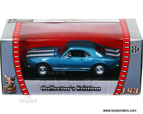 Yatming Road Signature - Chevy Camaro Z28 Hardtop (1967, 1/43 scale diecast model car, Blue w/ Stripes) 94216BU