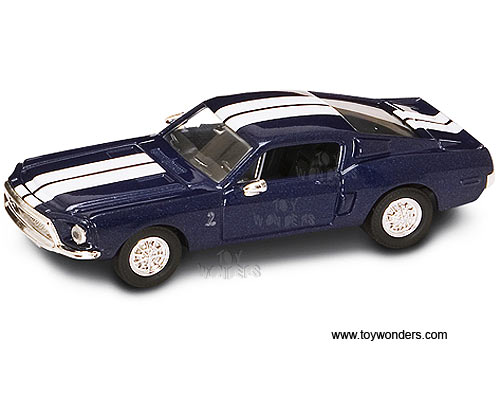 Yatming Road Signature - Shelby GT 500-KR Hardtop (1968, 1/43 scale diecast model car, Blue w/ Stripes) 94214BU