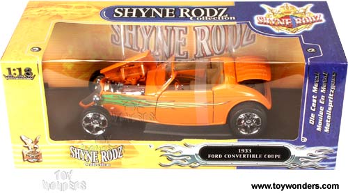Yatming Shyne Rodz - Ford Convertible Coupe w/ Dices (1933, 1/18 scale diecast model car, Orange) 30108