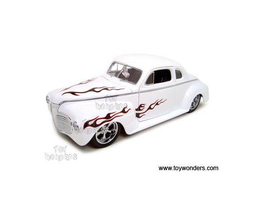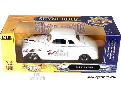 Yatming Shyne Rodz - Plymouth Hard Top w/ Dices (1941, 1/18 scale diecast model car, White w/ Flames) 30038