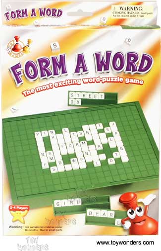 Game set includes a game board, racks, and all 26 letters of the alphabet! The most exciting word-puzzle game!