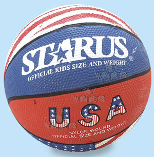 BB31N Basketball (USA Flag design, Size 3) Mini size, 7" diameter basketball. Shipped deflated. Includes hanging mesh net & inflation needle.