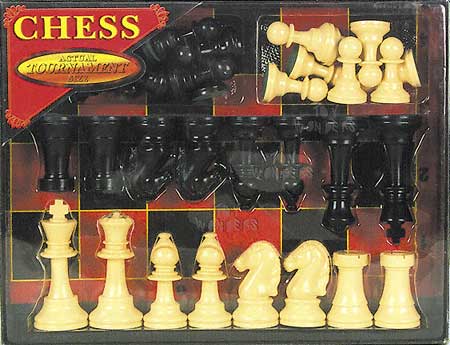 8060A Chess Tournament. Chess game. Size of pieces range from 2" to 3.5". King is 3.5" tall. Box size: 12" x 9.25" x 1.75"H.