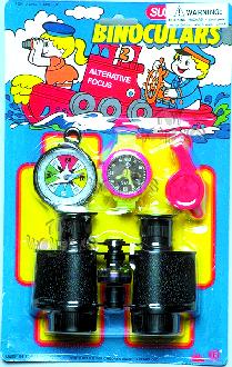 817 Binoculars Set Binoculars with compass, watch, and whistle. card size: 6.5"x10.25". 12 sets/inner.