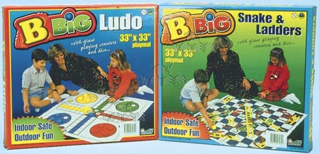 6565 Big Ludo & Snakes & Ladders. Big Game with foldable 33"x33" play mat plus the playing pieces. 2 assorted styles. Box size: 11.25"Wx10.5"Hx1.25"D. 12 pcs/inner.