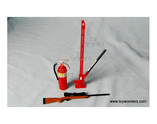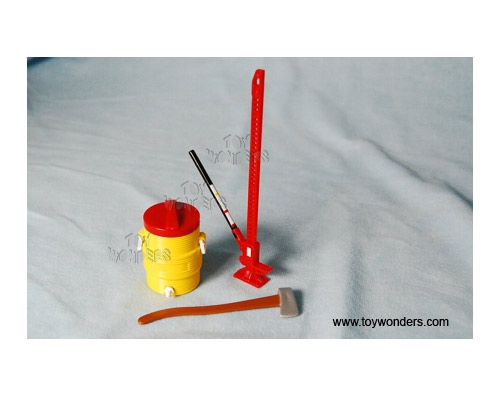 15100 Phoenix - Hobby Gear Accessory Set. Scaled for 1:10 scale model cars dioramas. Card size: 6"W x 8.75"L. Phoenix Toys. 8 sets per inner. These accessories are in assorted styles and include: ice box, pick, axe, shovel, fire extinguisher, gas can and more.