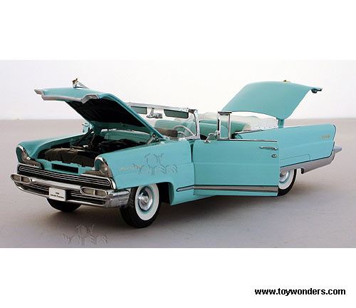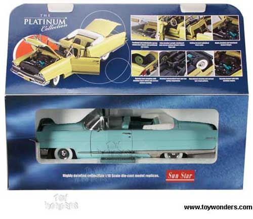 4643GN SUN STAR Platinum Collection - 1956 Lincoln Premiere Convertible. 1:18 scale diecast collectible model car. This Lincoln Premiere is a 12" long die cast metal car with openable hood, doors & trunk. Detailed engine. The Lincoln Premiere is manufactured by SunStar. 4643 in GREEN color. Individually packed in a window box. Box size: 14.75"Lx 6.8"Wx 6"H.