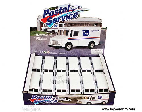 2101D Mail Truck. 4.5"Lx 1.75"Wx 2"H diecast metal, pullback action postal service mail truck. This mail truck is US Postal Service styling with a slide-away rear door. 12 pcs per display box and 72 pcs per inner. Z12