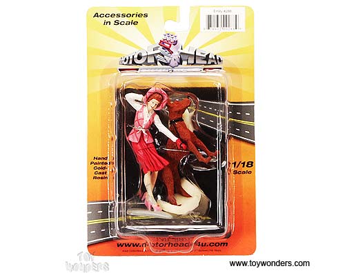 288PK Motorhead Miniatures Figurine - 1:18 scale Single Woman Emily in PINK. Hand painted cold-cast resin. This 3.75" figure is great for decorating 1:18 scale cars and dioramas. Manufactured by Motorheads. Individually packed in a blister card. Card size: 5.2" x 7.75".
