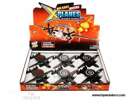 51255 X Planes Airforce. 6.75"Lx 8"Wx 2"H diecast aircrafts. These military fighter jets have pull back motor action and authentic details. 6 pcs per display box and in assorted colors. 36 pcs per inner box.