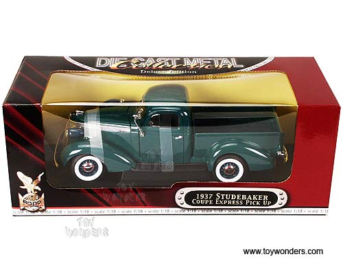 92458GN ROAD SIGNATURE/ YATMING - 1937 Studebaker Coupe Express Pick Up. 1:18 scale diecast model car. This pickup is 10.5" long x 4"Wx 3.25"H with opening doors, hood & trunk. The pick-up is manufactured by Yat Ming. Diecast Metal Collection Deluxe Edition. Quality Hard Made. Individually packed in a window box. Box size: 14"Lx 5.75"Wx 5.5"H. 92458 in GREEN color.